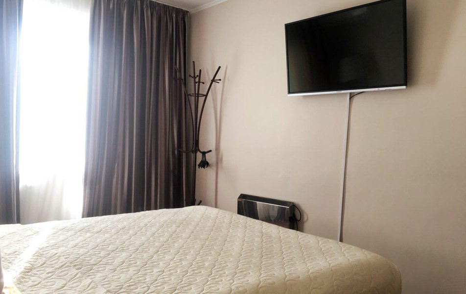 В номере: кровати односпальные /одна двуспальная кровать, прикроватные тумбочки, стол, стул, шкаф, кондиционер, микроволновая печь, телевизор, телефон, холодильник, чайный набор посуды, электрочайник