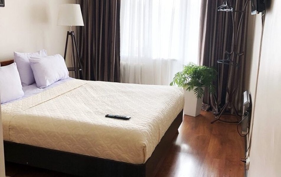 В номере: кухня, диван раскладной, кровать двуспальная, прикроватные тумбочки, стол, столик журнальный, стулья, шкаф, гладильная доска, кондиционер, микроволновая печь, набор посуды, плита электрическая, посудомоечная машина, телевизор, телефон, утюг, холодильник, электрочайник
