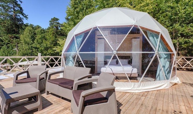 В отеле предусмотрены различные варианты размещения: номера различных категорий, шале, домики, апартаменты и купола. Каждый номер оборудован всем необходимым для полноценного отдыха, включая удобную мебель, бытовую технику, современные санузлы и доступ к Wi-Fi.