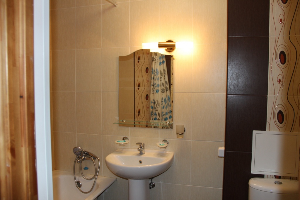 Санузел: ванна или душ, раковина, унитаз, фен