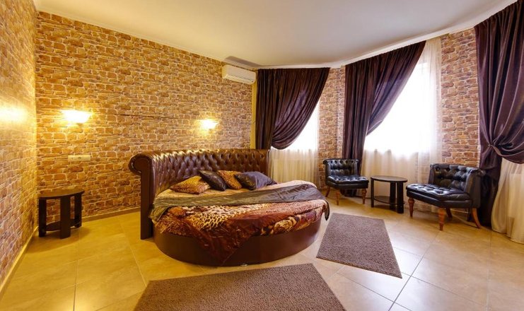 В номере: вешалка, зеркало, кровать двуспальная, прикроватные тумбочки, стол, стулья, шкаф, мини-холодильник, набор посуды, сплит-система, телевизор