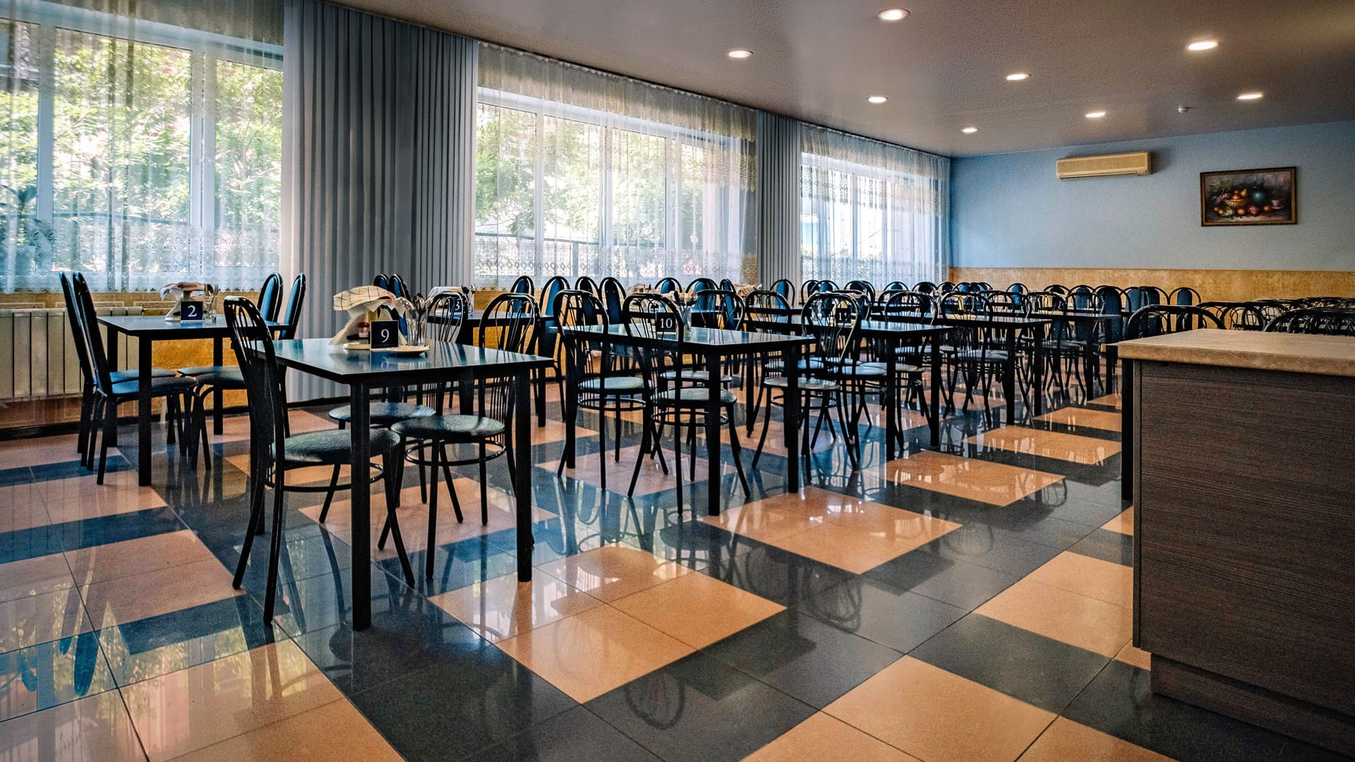 Вы можете заказывать обед и ужин в нашей столовой, где представлено разнообразное семидневное меню: супы, салаты, закуски, мясные и рыбные блюда.