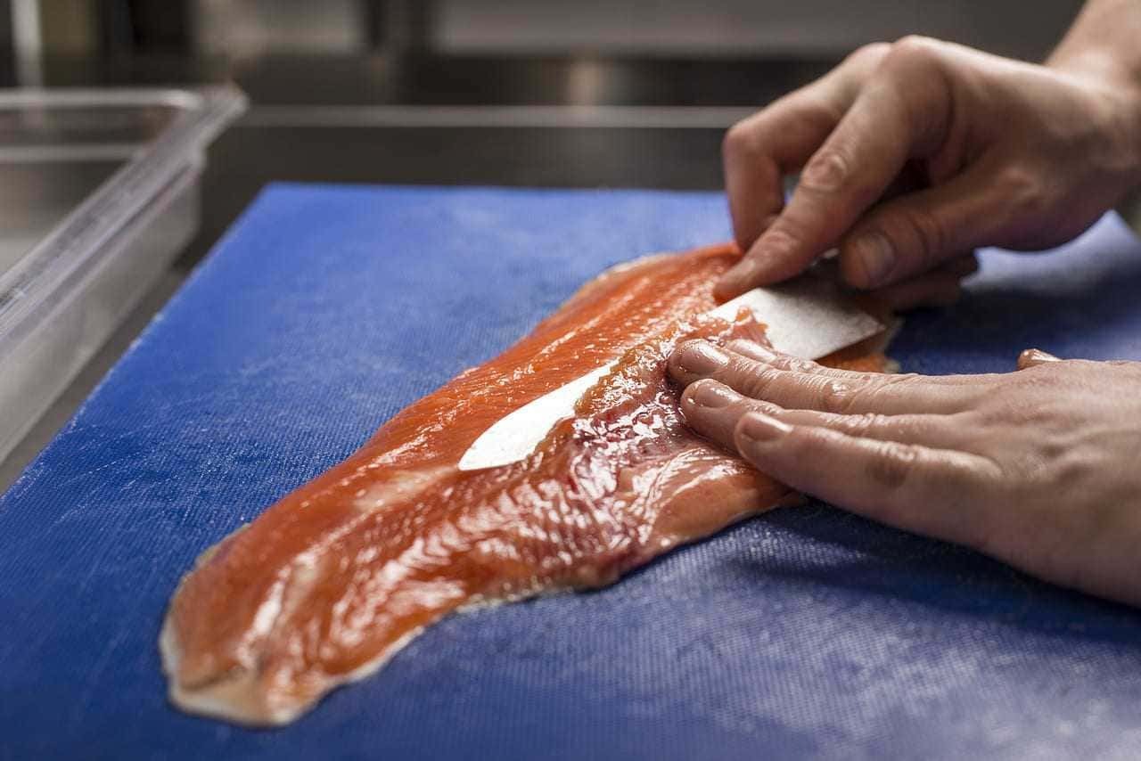 В меню представлены блюда истинно карельской кухни: традиционная уха, калитки, рыба. Традиционные карельские калитки – это горячие открытые карельские пирожки с наливками, начинками, припеками, смазанные сливочным маслом. В нашей интерпретации — это ржаное тесто с подушечкой из картофельного крема, сверху мы кладем тартар из карельской форели и украшаем завитками зеленого лука. Можно есть их с утра и до ночи!