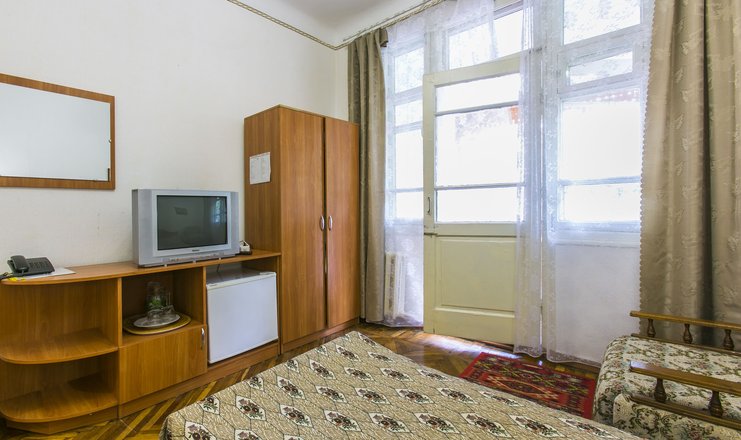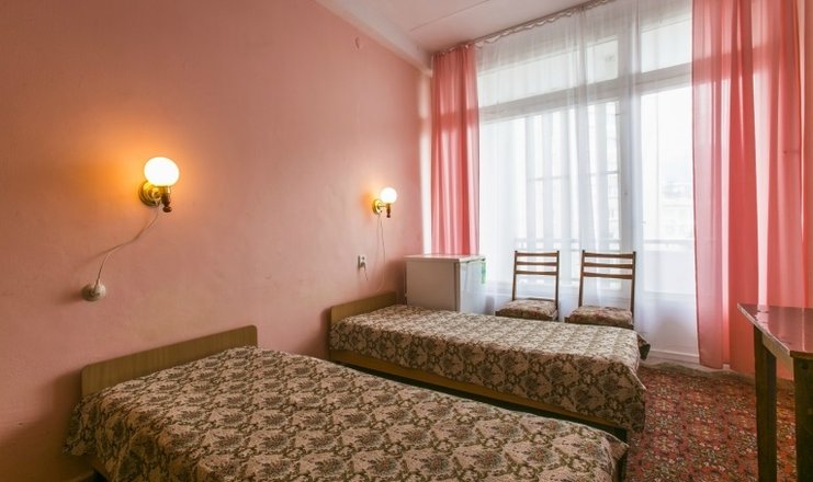 В номере: кровати, шкаф, тумбочка, холодильник, телевизор, вентилятор по требованию