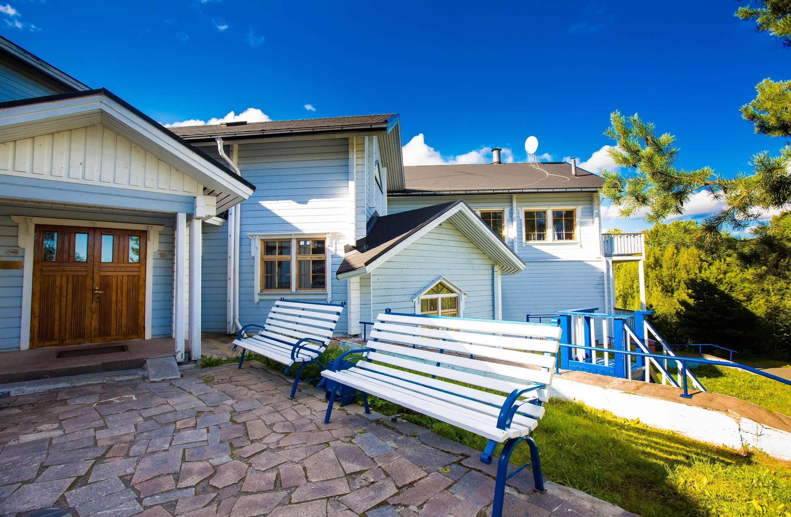 Отель построен по финской технологии с использованием экологически чистых деревянных конструкций. Он занимает площадь 1,5 Га и состоит из одного корпуса, трех домиков типа "A-frame" и бани. Вместимость отеля составляет до 120 человек. В отеле предлагается размещение в просторных и комфортабельных номерах двух категорий: Стандарт и Люкс. Все номера оборудованы системами отопления и водоснабжения, а также включают ванную комнату и качественную деревянную мебель, необходимую бытовую технику.