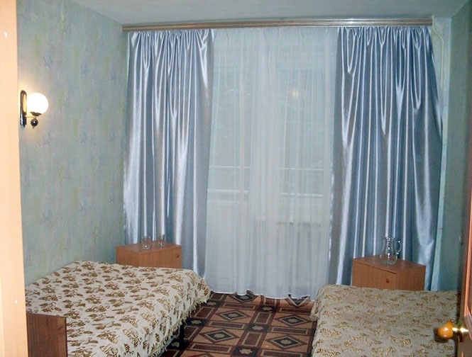 В номере: две односпальные кровати, телевизор, журнальный столик, платяной шкаф.